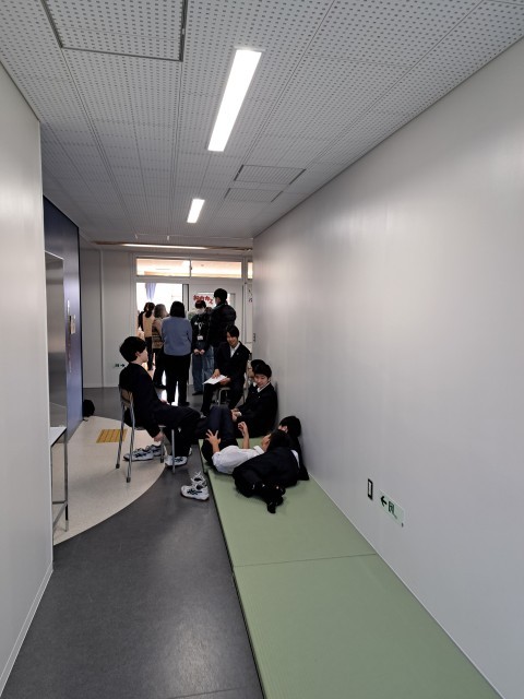 廊下に畳を並べ、カードゲームがスタートしていました。