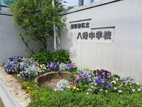 正門付近は地域の『花づくりサークル』のみなさんによって春らしいお花がたくさん準備されています。