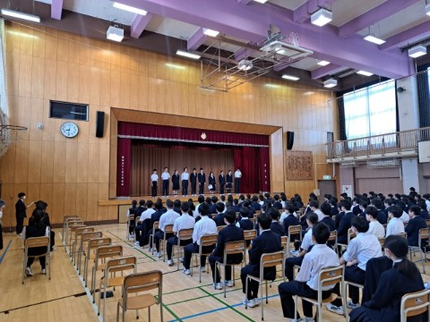 今日は今年度始めての生徒会朝礼がありました。