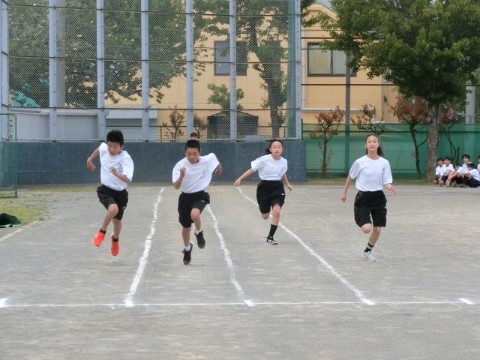 今日は50m走のタイム計測をしていました。