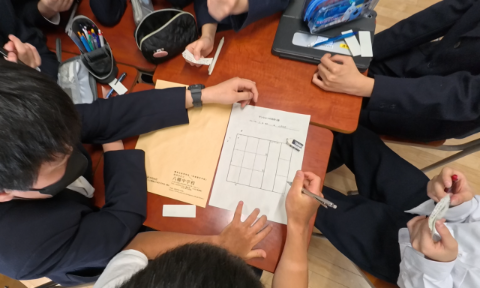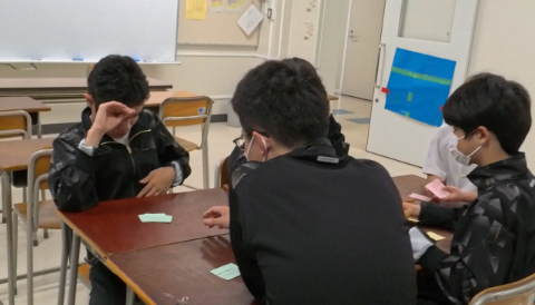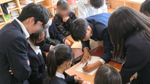 6時間目、全校校外学習に向けた縦割り班で構成的グループエンカウンターに挑戦。