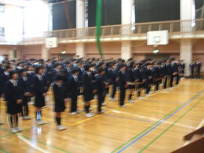 2月20日、今日は全校朝礼がありました。今回も、生徒たちは時間通りに整列できていました。また今回は、副校長先生から、「勉強や仕事の能率は、朝が最もあがる」というお話がありました。副校長先生、ありがとうございました。