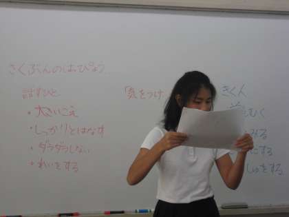 緊張したこと、打ってうれしかったこと、応援してもらったことなどを一生懸命書いていました。写真は作文発表の様子です。