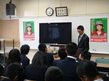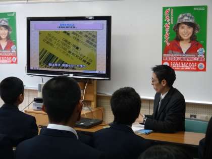 毎年2年生を対象に玉川ライオンズクラブと玉川警察署少年係と連携して、薬物乱用防止講習会を実施しています。パソコンを活用した説明や警察官の話を聞き、薬物は絶対によくないものであり、自分だけでなく周りの人も悲しませるものだということを再確認できました。