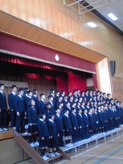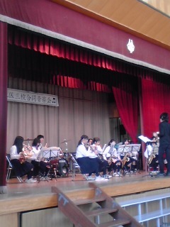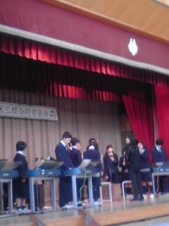 八幡中学校からはC組の合奏、吹奏楽部の演奏、(1年生)有志合唱が行われました。