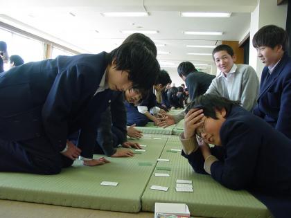 上の句の半分くらいが読まれると、札を勢いよく取る音が一斉にし、また歓声が上がっていました。子どもたちは百人一首をよく憶えてきているだけでなく、この大会をとても楽しいんでいました。