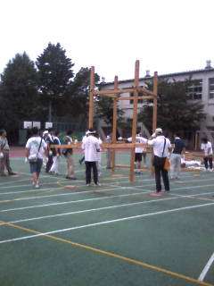 7月18日の「八幡小学校親子盆踊り大会」での会場づくりでは、八幡・九品仏小学校、八幡中学校の先生方や青少年九品仏地区委員会・八幡小学校おやじの会・地域の方々は櫓の組み立てです。暑い中、ご苦労様でした。
