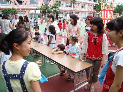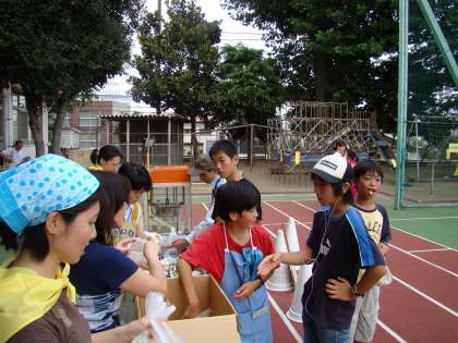 「麦茶係担当」「綿あめづくり担当(行列整理)」「ポップコーン担当(行列整理)」「ポイ捨て禁止担当(ゴミ集め)」「アナウンス担当」のボランティアの生徒の皆さん、ご苦労様でした。