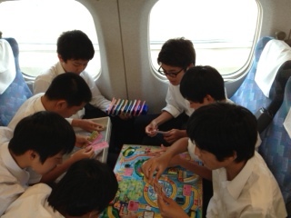 新幹線の中では、ゲームなどをして楽しく過ごしています