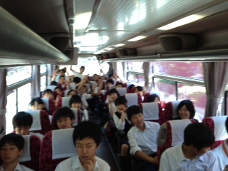 バスに乗って法隆寺そして奈良公園へ向かいます