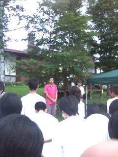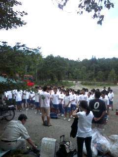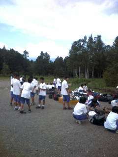 バスから荷物を降ろし、宿舎の前で各部ごとに昼食と休憩、その後開園式です。