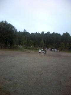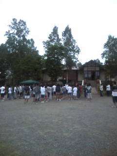 部活動合宿2日目、6時起床、6時半には宿舎前に集合して、少し離れた広場まで散歩をして体操です。今日の天気は曇です。
