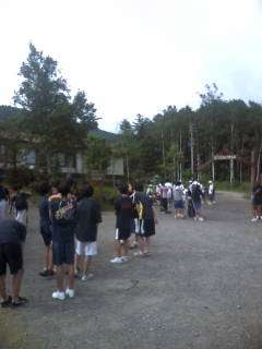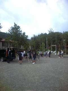 部活動合宿2日目は8時半から練習開始です。宿舎前にまず集合。それから各部の練習場所に出発です。