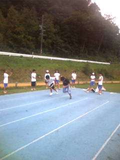 陸上競技部は30m走、50m走、70m走でタイムを計りながらの練習です。