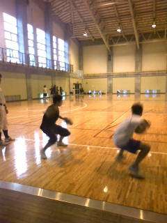 バスケットボール部には体育館の半面(とは言え八幡中学校の体育館くらいの広さです)で練習をしてもらます。