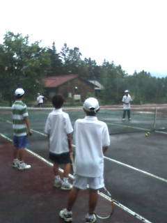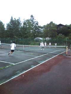 テニス部は、雨の合間に、シングルスのゲームのあと、ダブルスなどの午前の練習ができました。しかし、11時半からは雷雨で中止になってしまいました。
