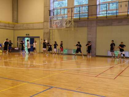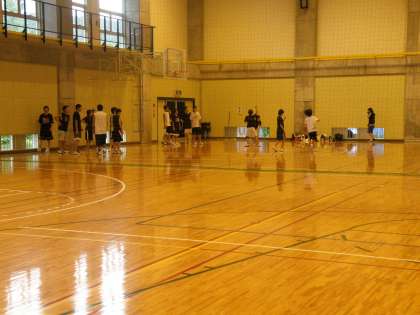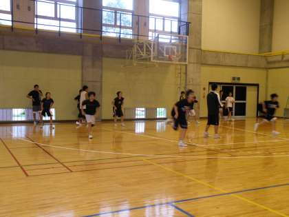 部活動合宿最終日、バスケットボール部は、雨のため他の部が体育館の半面を使用したので、2日目から半面での練習になってしまいました。
