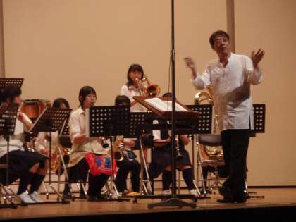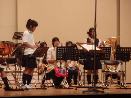 1曲目はサンバの軽快なリズムで、2曲目は会場の手拍子とともに演奏ができました。本校の吹奏楽部は他校に比べ人数は少ないのですが、一人一人がしっかり音を出し、人数以上の迫力があり、他校の先生方からも良い音が出ているとお褒めの言葉いただきました。