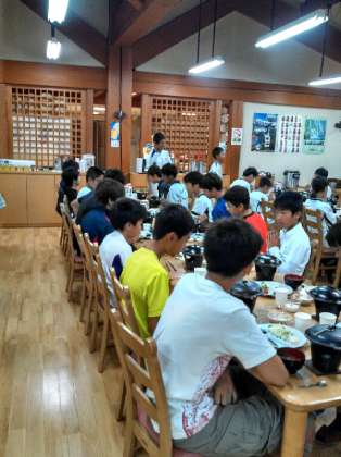 予定より5分早く朝食が開始できました。朝食のあいさつ担当は野球部です。