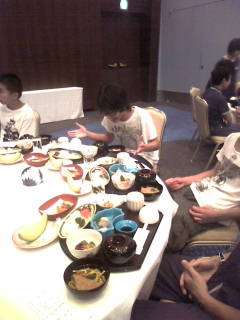 班行動でホテルに帰ってくる時間に遅れた班はありましたが、予定どおりお風呂にもはいり、6時半から夕食です。