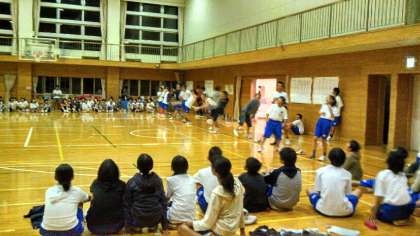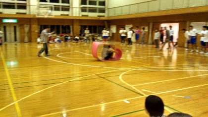 おもしろい種目が目白押しです。スリッパ飛ばし、キャタピラーリレーなど盛り上がってます。