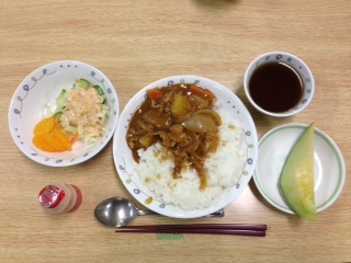 今晩はカレー作りです。みんなで作ったカレーをいただきます。どの班もおいしくできました。18:30