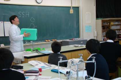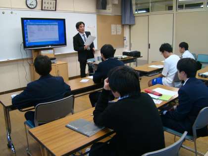 11月29日(金)5,6校時に高校訪問授業が第2学年で実施されました。都立高校の先生方に八幡中に来ていただき、授業をしていただくという取り組みです。今年度は6校の都立高校の先生にお願いしました。(1)都立晴海総合高校の千葉先生(キャリア教育)(2)都立青山高校の大場先生(英語)(3)都立大田桜台高校の中西先生(スペイン語)(4)都立園芸高校の松橋先生、米山先生(動物)(5)都立工芸高校の小林実先生(デジタルカメラ)(6)都立戸山高校の小林一人先生(空気砲の仕組み)の6コースが設けられ、八幡中学校2年生はこの中から2科目を選択し、受講しました。キャリア教育では、自分の性格や将来自分に向いていると思われる職業などが分かり、生徒もとても興味深く学習していました。英語では発音の違いを学習し、ドレミの歌を英語で歌う言語活動に取り組みました。生徒もよく歌っていました。スペイン語では発音の仕方を学び、生徒はスペイン語での自己紹介ができるようになりました。動物では園芸高校から、へび、モルモット、チンチラ、犬、ヤモリ、ハト、うさぎ、チャボなどをもってきていただきました。クイズ形式で動物のことを学び、その後はさまざまな動物と触れ合いました。6校時の最後には校庭から生徒がハトを飛び立たせる活動もありました。ハトは自分で園芸高校に帰るそうです。工芸高校の小林先生はデジタルカメラの仕組みや上手な撮り方や注意するべき点を教えてくれました。物理ではSSHのお話をしてくれたあと、空気砲の仕組みについて学習しました。高校の先生方の感想もいただきました。八幡中の生徒は礼儀正しく、しっかりと授業を受ける生徒が多く、授業がやりやすかったとおっしゃってくれました。積極的に発言をしたり、活動をしたりする生徒が多く、とてもうれしかったというお話もいただきました。生徒たちは高校の先生の授業を受け、来年の自分の姿を想像した生徒も多くいました。生徒が自分の将来やあるべき姿を考え、日々の生活に生かしていってくれることを期待しています。