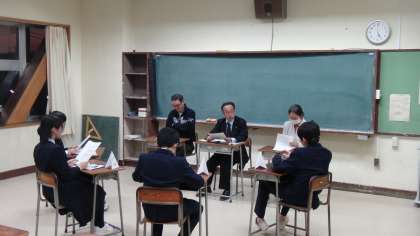 都立高校の推薦受験では、昨年度より集団討論が導入されました。そこで本校では、集団討論の練習を行っています。生徒たちは、緊張しながらも練習に臨み、少しずつコミュニケーション能力や思考力、表現力が向上できたようです。