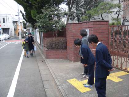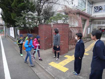 今週2月3日(月)から8日(土)〔5日(水)を除く〕にかけて、八幡中学校では「生徒会朝のあいさつ運動」を行っています。この期間中、生徒会は中学校の正門と西門に分かれて、あいさつ運動を展開します。また4日(火)には、生徒会のメンバーが八幡小学校に行き、あいさつ運動をしました。7日(金)には九品仏小学校に行く予定です。