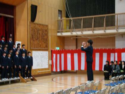 また、2学年による合唱「春に」は、昨年10月の学芸発表会の合唱からさらにレベルアップした歌声でした。そして、歌の中に込められた気持ちがよく伝わってきました。きっと、式に出席した1年生や、九品仏小、八幡小の6年生のみなさん、ご来賓、保護者の皆さまに、2年生としての今後の決意が伝わったことと思います。