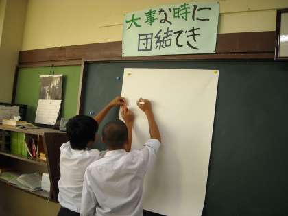 24日(土)の学芸発表会にむけ、合唱の練習が本格的に始まりました。帰りの学活で練習をするクラス、放課後残って音程を確認しているクラス、歌詞を模造紙に書いているクラス、それぞれのクラスごとの取り組みに熱が入ってきました。