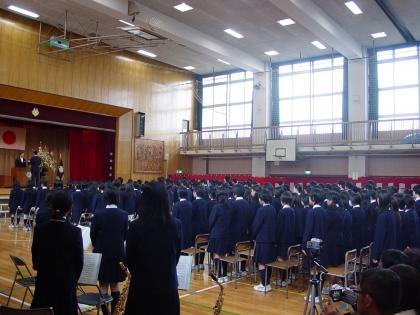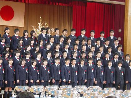 卒業証書授与、学校長式辞、2年生代表の「送ることば」のあと、卒業生代表の「別れのことば」と卒業生全員で作詞した「煌(きらめき)」の合唱は、とても素晴らしく、また感動的でした。