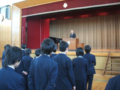 3月25日、修了式が行われました。校長先生からは、修了証書の授与があり、この一年間を振り返ると共に新たなスタートに向けてのお話がありました。生活指導の先生からは、春休み期間中の過ごし方、始業式の服装・参加の仕方についてお話がありました。これで、平成19年度の授業は最後となりました。