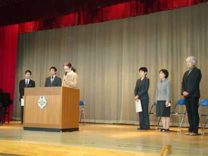 着任式で本校に転入された9名の方々が発表され、この日は6名の方からお話がありました。新しい教職員を迎えた八幡中学校をよろしくお願いします。