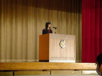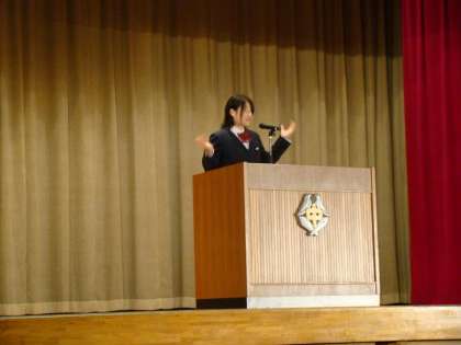 「英語スピーチ」の3年生は、中島りかさんの「A pianist」、山本愛乃さんの「Every has a Beautiful name」、吉久ひとみさんの「Word are Alive」です。
