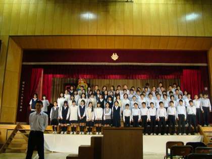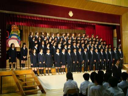 3年生は、やはり最上級生であり、中学校生活最後の学芸発表会ということで、素晴らしい合唱でした。また、「虹」の途中には男女各1名の代表が歌う場面のあり、田口君と田中さんが素晴らしい歌声を披露してくれました。