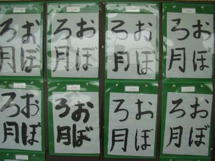 書写の授業では、「おぼろ月」という文字を書きました。