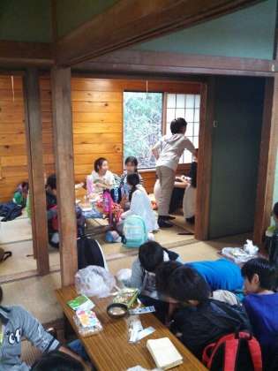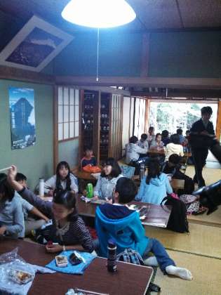 奥庭荘でお昼です。皆お腹ペコペコのようです。