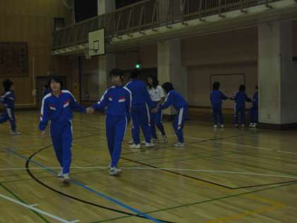 まずは手つなぎ鬼でウォーミングアップです。生徒たちの体力はすごい。先生たちめがけて猛ダッシュです。大人は息が切れている中、生徒たちは元気いっぱいです。