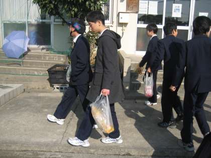 今回のメニューは「ピーマンの肉詰め・ごはん・だいこんの味噌汁・たくあん」です。26名で消費するピーマンの数は40個!買い物袋いっぱいにピーマンがつまっていました。
