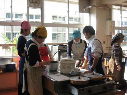 ピーマンの肉詰めは、「ピーマンは嫌いだけれどお肉は食べたい!」という生徒にとっては、複雑なメニューのようでした。ピーマンを細かく切って食べる生徒もいました。しかし、肉と一緒に焼くことによって、ピーマンの青臭さが減り、食べやすくなったという生徒もいました。