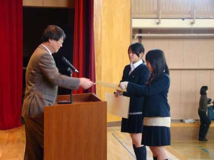 英語スピーチコンテストでは、3年の山本さん2位と吉久さんが3位にに入賞しました。