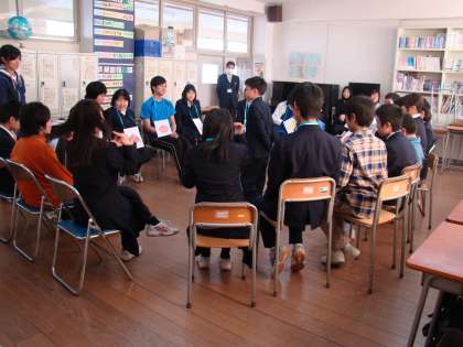 20日(金)C組では来年度の新入生を招いて交流会を実施しました。生徒が司会進行を務め、自己紹介、制服体験、フルーツバスケット、フライングディスク体験などを行いました。小学生は緊張した様子も見受けられましたが、4月からは仲間です。入学を楽しみにまっています。