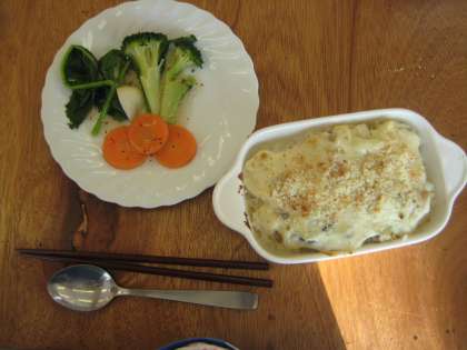 献立は「ドリア・温野菜サラダ」でした。3年生が出願日であったため、1年生のリクエストメニューでした。
