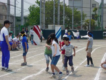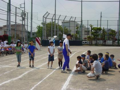 4チームに分かれて、普段小学校では走ったことがない100mを一生懸命に走って、バトンをつないでいました。