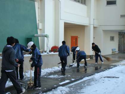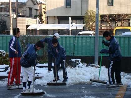 2月2日(火)、東京は昨晩より雪が降りました。降り積もった雪を先生や主事さん方と一緒に、野球部のみんなが雪かきをしてくれました。