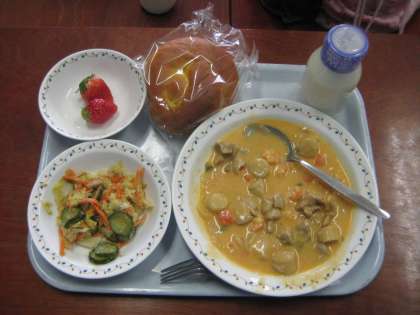 ちなみに、今日の献立は、「パンプキンパン・鶏のパプリカ煮・ツナサラダ・いちご」でした。明日は、節分にちなんだ献立です!