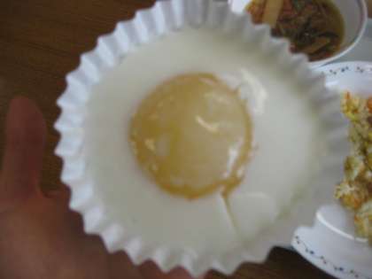 「おかしなたまごやき」はミルクゼリーの中に、黄桃が入っているメニューです。一見すると、何でできているかわからない不思議なメニューです。
