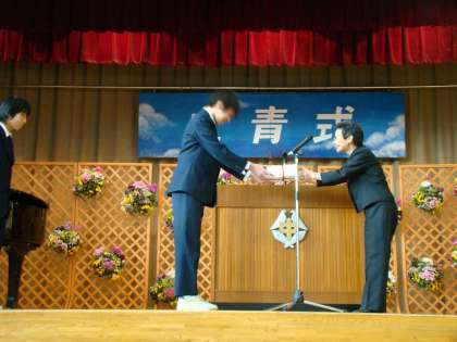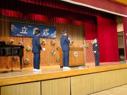 また、青少年九品仏地区委員会から、2年生に記念品をいただき、2年生の代表の中村君が「お礼のことば」を述べました。