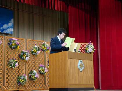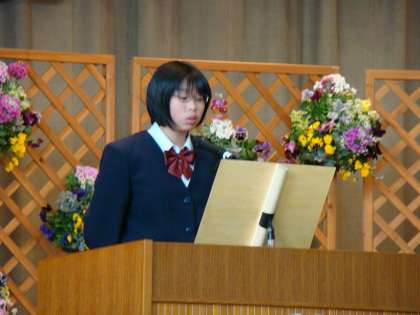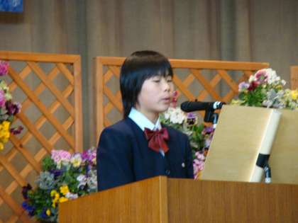 最初はC組松原君が「韓国のすばらしさ」、次にB組中塚さんが「よりアクティブに身近な自然を」、そしてA組の鈴木さんが「廻る時」という題で意見を発表しました。